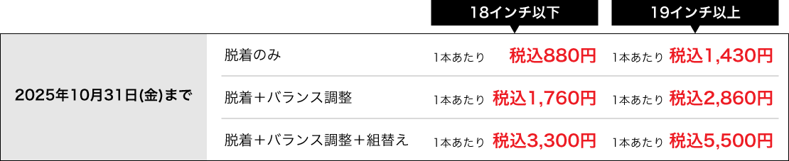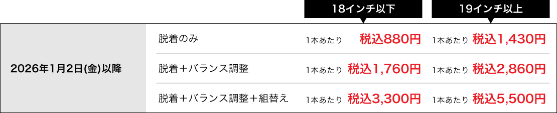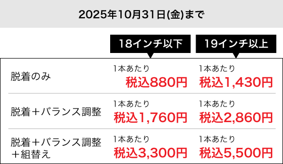 オートバックスグループ以外でご購入済みのタイヤを持ち込む場合の交換作業工賃